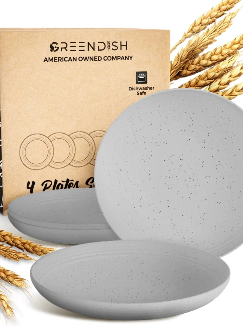 Wheat Straw Plates Set of 4 Unbreakable Plastic Dishes Dinner Microwave Safe