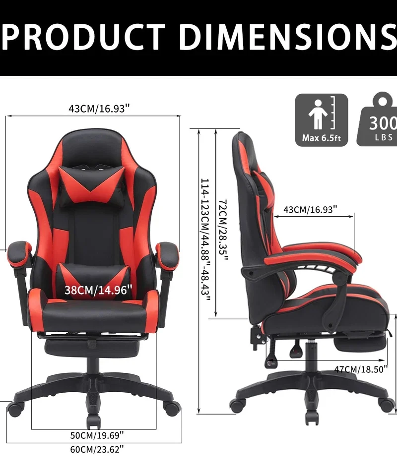 Gaming Chair Swivel Computer Racing Ergonomic Office Chair w/ Footrest Red