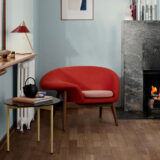 This armchair showcases a sleek and sophisticated aesthetic with its gracefully curved backrest and clean silhouette. The combination of modern form and warm, natural materials makes it a versatile piece for any interior setting.